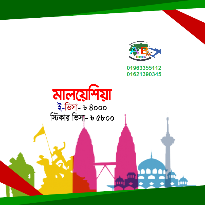 Malaysia visa requirements: 01. Valid Passport (Minimum Six-Month Validity)    02. Two Copies Recent Passport Size (3.5×5.0) Photograph White Background    03. Bank Statement Last six Months,(Minimum Balance -1,00000/=   04. Bank Solvency Certificate   05. Trade License with Notary    06. Forwarding Letter.    07. Visiting Card. 08. ID card For Student Only.    09. Marriage Certificate (only for couple)  total 5800/= tk visa fee & service charge